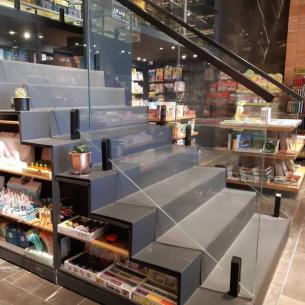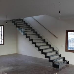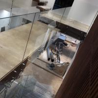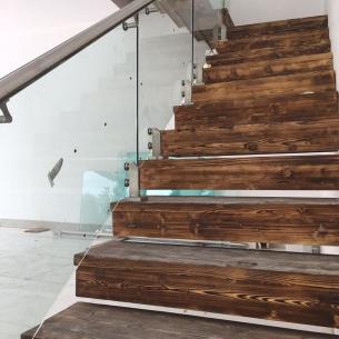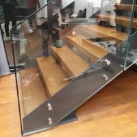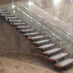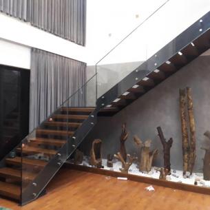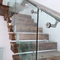 نرده شیشه ای پله با پایه 1001 به همراه هندریل استیل