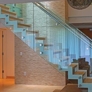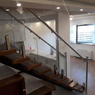 نرده شیشه ای پله معلق بدون فریم