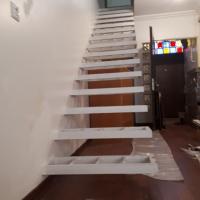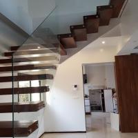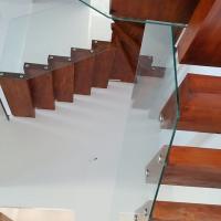 پله دوبلکس معلق چوبی با نرده شیشه ای