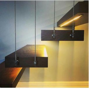 پله های معلق ، تولید شده با برترین فناوری دنیا یکی از طرح های مدرن در راه پله ها ، پله های معلق و پله های آویخته است که میتوانند در انواع متریال ها شکل ها و رنگ ها تولید شوند پله های معلق معمولا دارای شکل و زاویه هستند و در هر نوع تخته و الوار در دسترس اند.