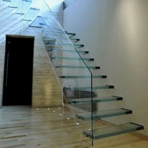 پله معلق تمام شیشه ای با یراق آلات استیل